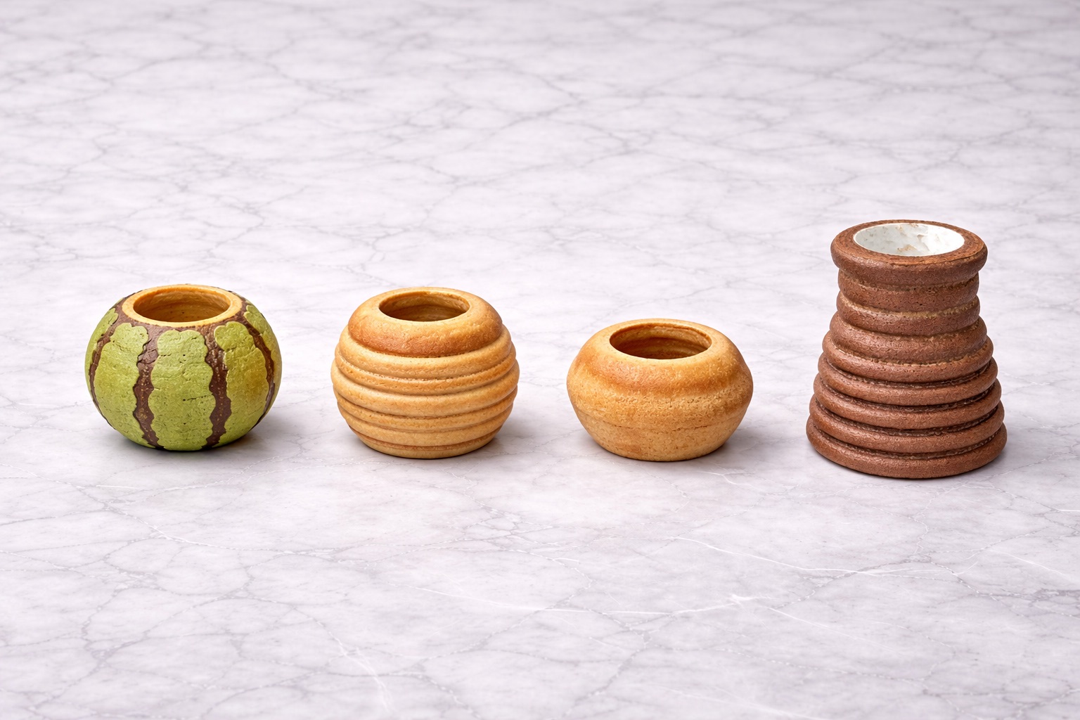 하드 타입 : 다양한 굴곡과 모양으로 바움쿠헨을 소성하여 혼당 처리를 하거나 안에 크림을 채워 개발